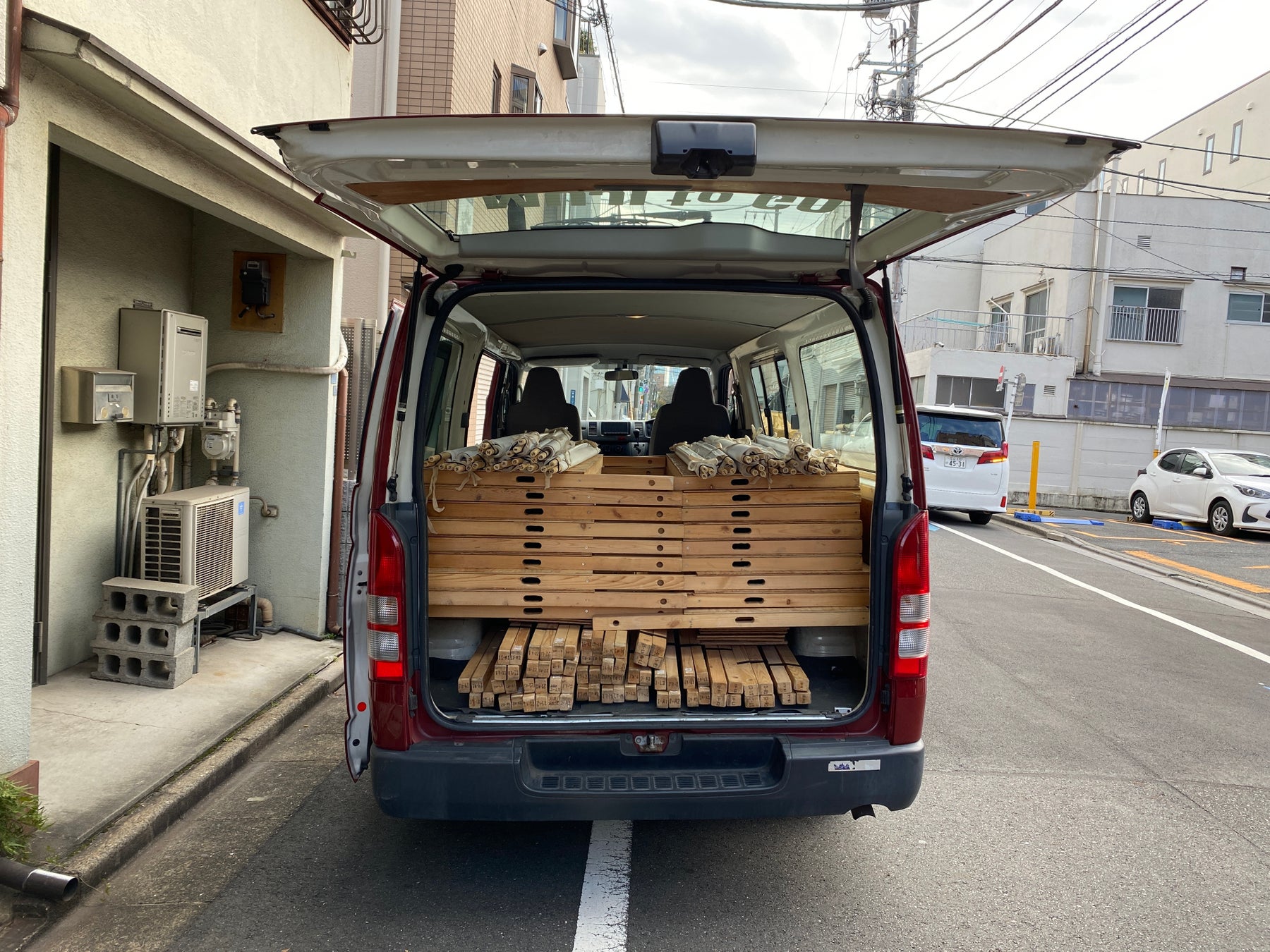 ホームセンターで購入できる材料で、電動ドライバーさえあれば誰でもDIY製作ができます。分解すればコンパクトに収納可能で、ワゴン車で数十台運搬できるため、運搬の負担も削減しています。