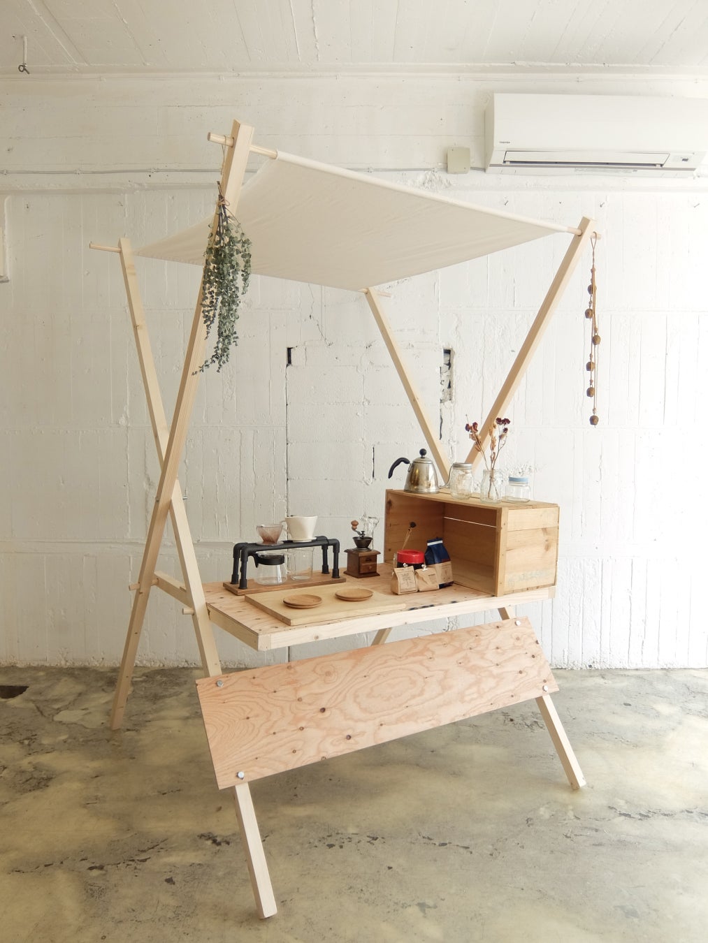tomioka standは製作から運搬・組立て・解体が誰でも簡単にできる組み立て式屋台です。これまで公園や水辺で行われる、コーヒーフェスやマルシェイベント、ポップアップショップのマルシェスタンドとして使用いただいています。